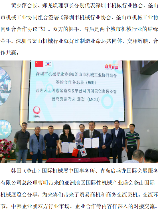 中國(guó)深圳—韓國(guó)釜山機(jī)械行業(yè)企業(yè)對(duì)接交流會(huì)成功舉行